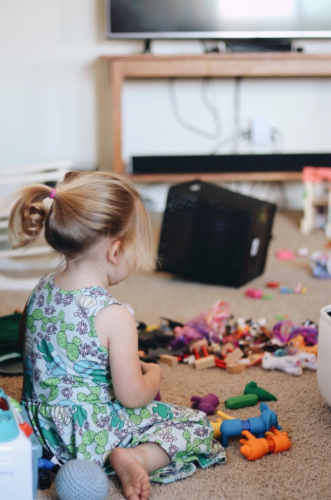 In my home we have a mid-day reset. Before her nap in the afternoon, Vivian and I clean up all the toys. I like this method because it not only keeps the mess at a manageable level, it also encourages my toddler to clean up after herself and establish habits of tidiness. When she gets up after nap, the room is a clean slate and she can pull out whichever toy/s she wants to play with. We also clean up the room before bedtime so that we have a fresh start the next day.