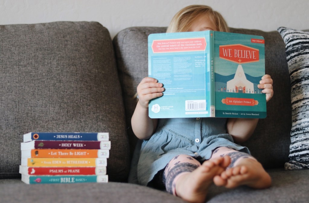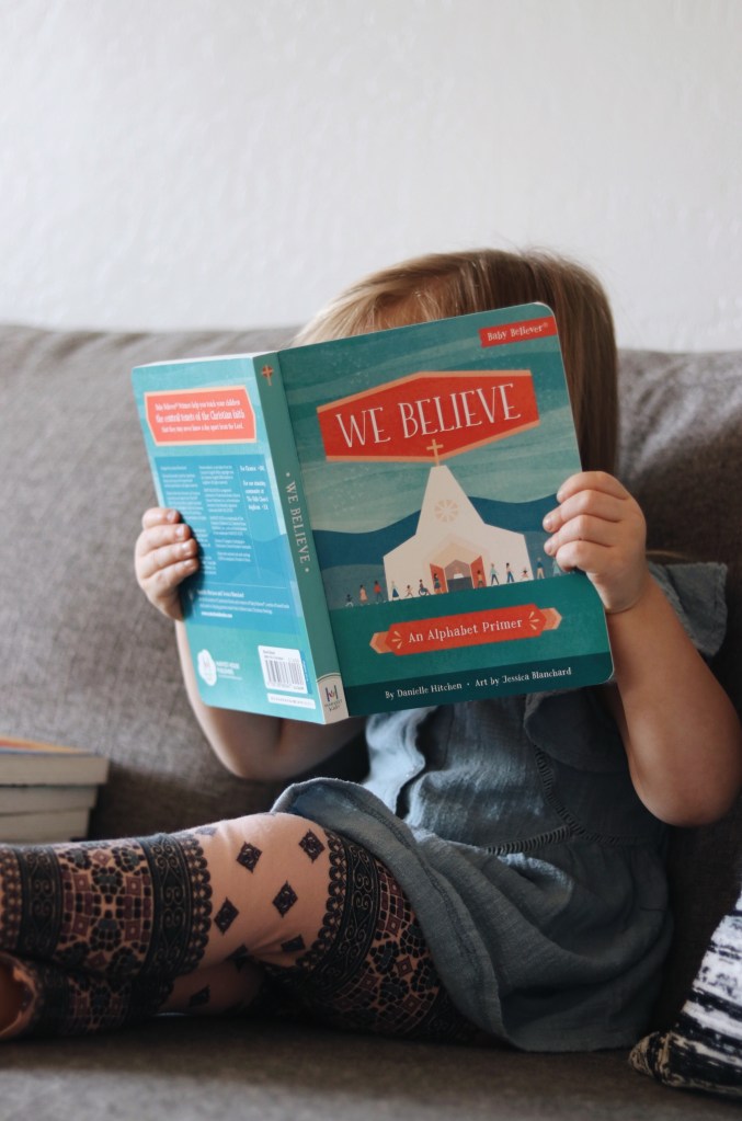 We Believe: An Alphabet Primer is the seventh book in the series (full list of titles at the bottom of this post), and is a worthy addition. It takes you through the alphabet, using words common to Christianity and a correlating verse or quotation to give context / explanation. This book quotes scripture and the Nicene Creed, as well as the Apostle’s Creed, and also includes text from the author, Danielle Hitchen.