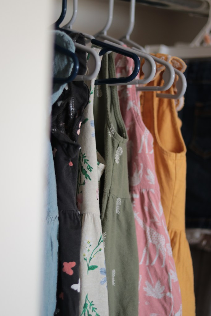 Try to get an idea of what your child actually needs. Newborns tend to need a lot, to be sure, but after the first 6 or so months, that tapers off significantly. Generally speaking, I feel like two weeks worth of clothes is a good amount. Not to say that you can’t have more or less, but you don’t want to have so much that pieces aren’t even getting used.