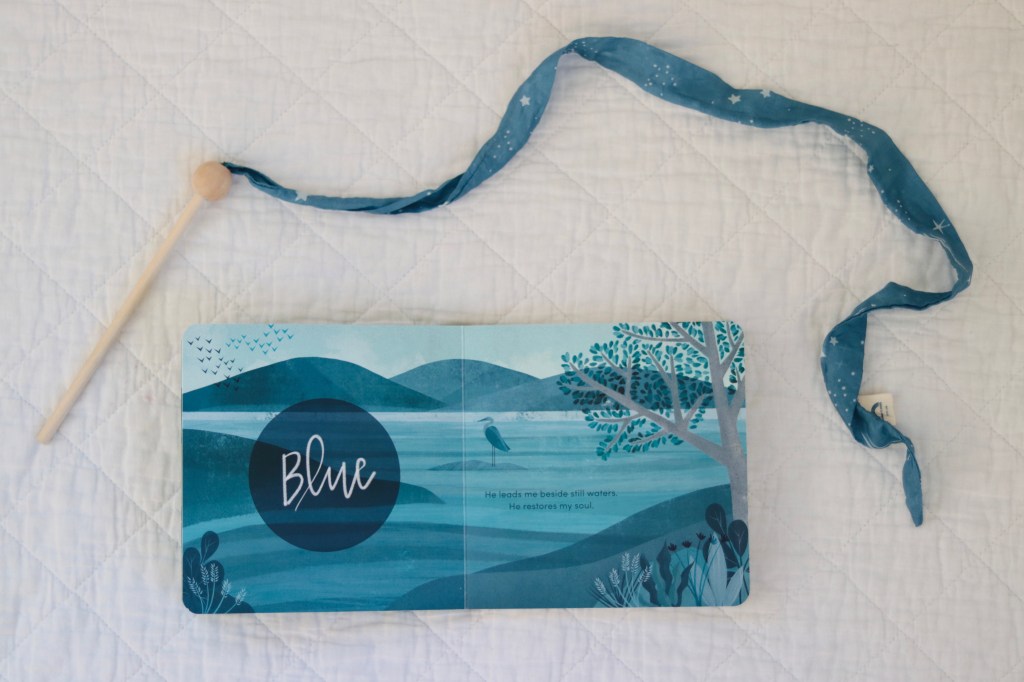 The beauty of this approach is the learned association. Once your little one is familiar with Blue representing Christ leading us beside still waters, seeing the color in other contexts will bring the verse back to mind. It’s a simple way of teaching our children to meditate on the word of God in an organic way.