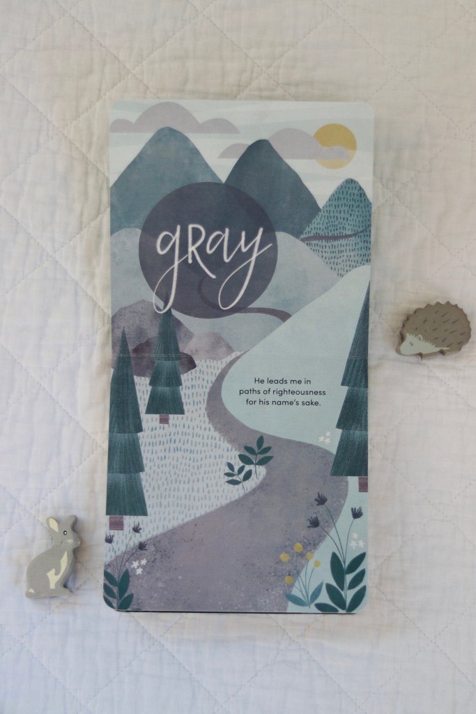 As the title states, Psalm 23 is a colors primer. It takes the text of this familiar Psalm and pairs it with appropriate colors. The illustrations, as always, are beautiful and can inspire conversation as you read through the verses.
